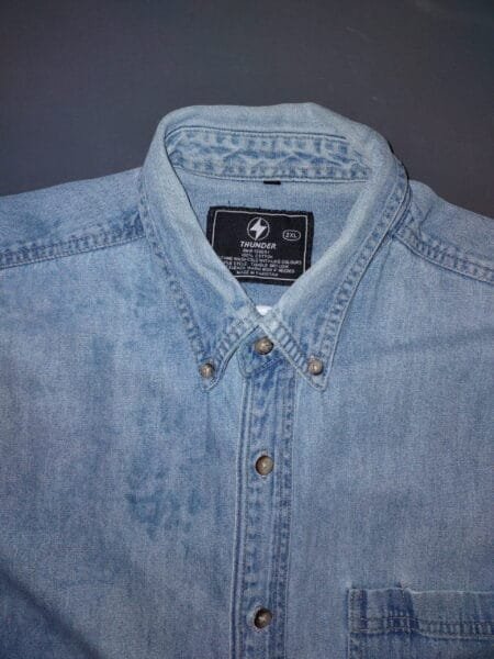 PLEASE NOTE:  These denim shirts are second in quality. The dye on these shirts is not uniform. There could be dark and/or light patches/spots through out the shirt. These are non-returnable. Sold as is. Again, please note: these are NOT ABLE TO BE RETURNED. SOLD AS IS!