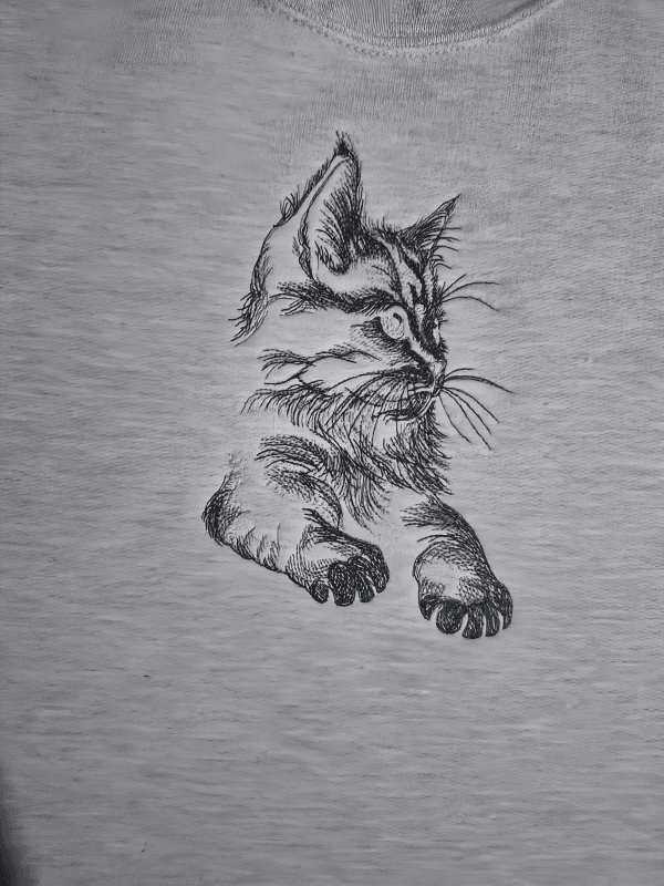 This cozy gray sweatshirt features a beautifully embroidered gray cat with striking green eyes — a subtle, artistic detail that adds charm without overwhelming your outfit. This piece is carefully stitched by Colleen’s Creations, giving you a handmade item that feels personal, warm, and thoughtfully crafted.