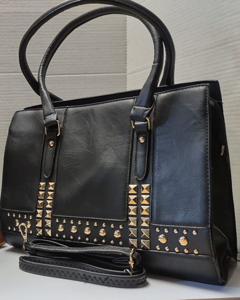 Introducing our studded handbag, designed for those who appreciate a perfect blend of style and functionality. This eye-catching purse features a stunning array of studs that adds a touch of glamour to any ensemble. Whether you’re heading to a party, running errands, or enjoying a night out, this handbag will complement your look effortlessly.