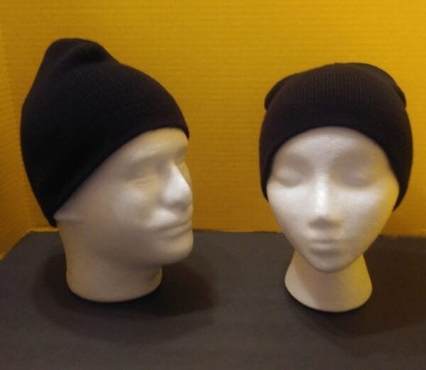Yupoong black Beanie. OSFM. Double ply soft 100% turbo acrylic.